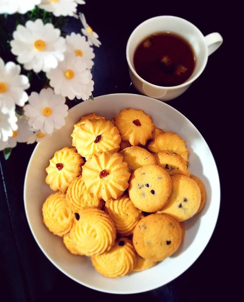 Bánh cookie là món bánh quy nướng, giòn rụm hoặc mềm tùy loại, thường có vị bơ thơm béo, thêm sô-cô-la chip, hạt, trái cây khô